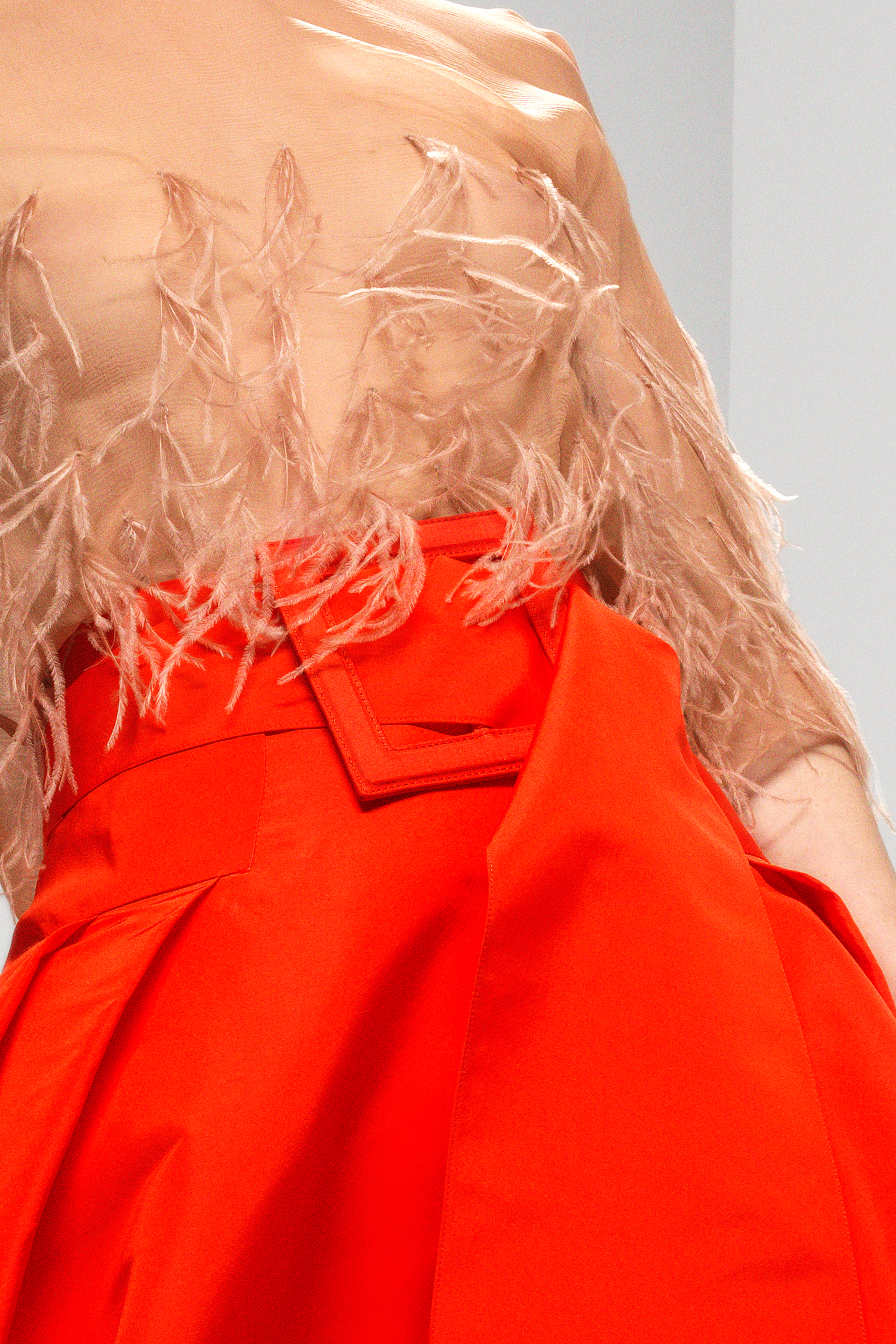 Top met 3/4 mouwen in zijden mousseline met geborduurde struisvogelveren
