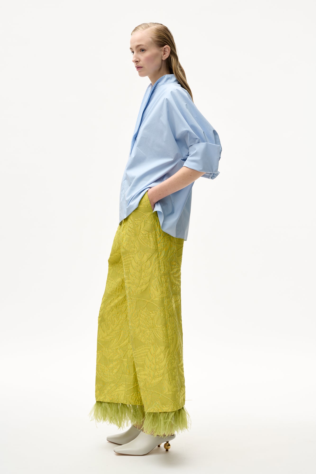 Broek in jacquard met reliëf bladeren