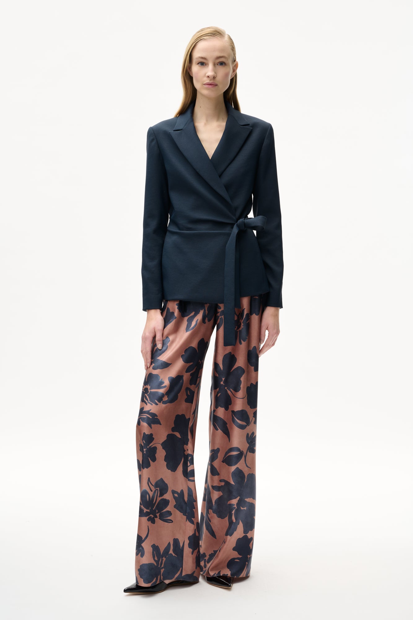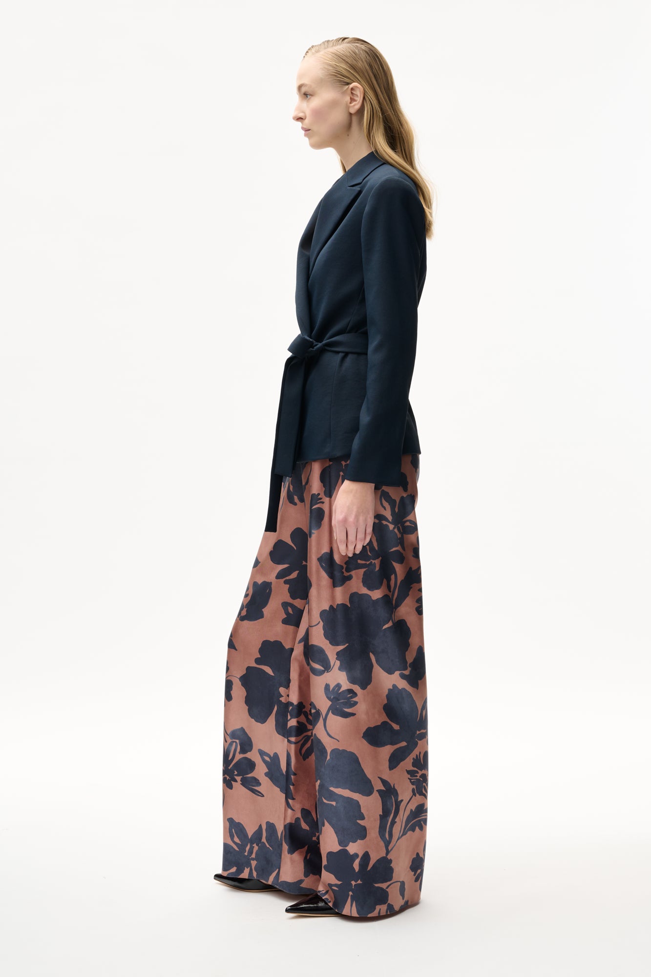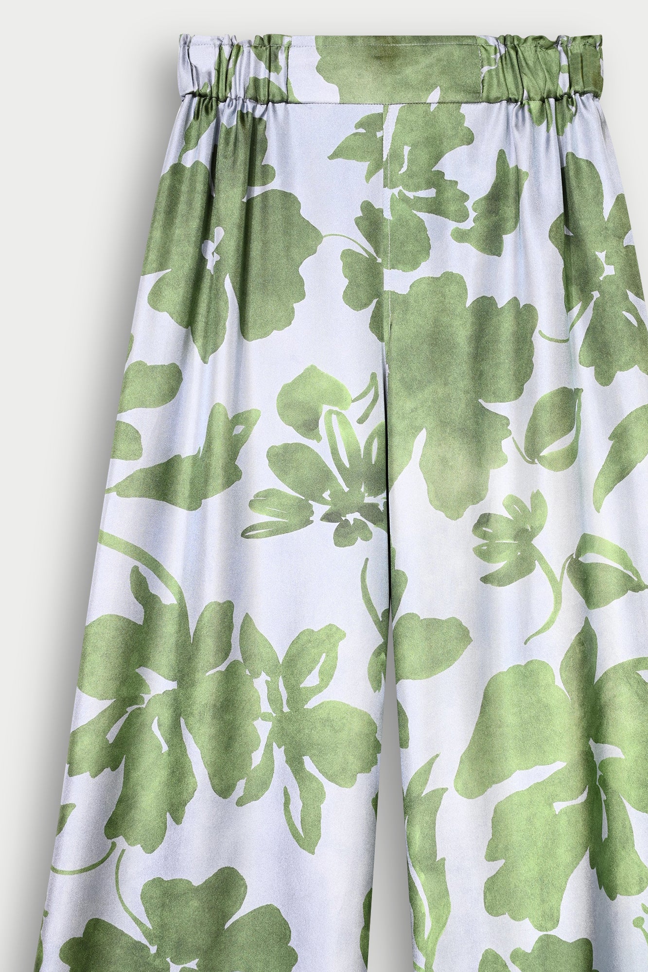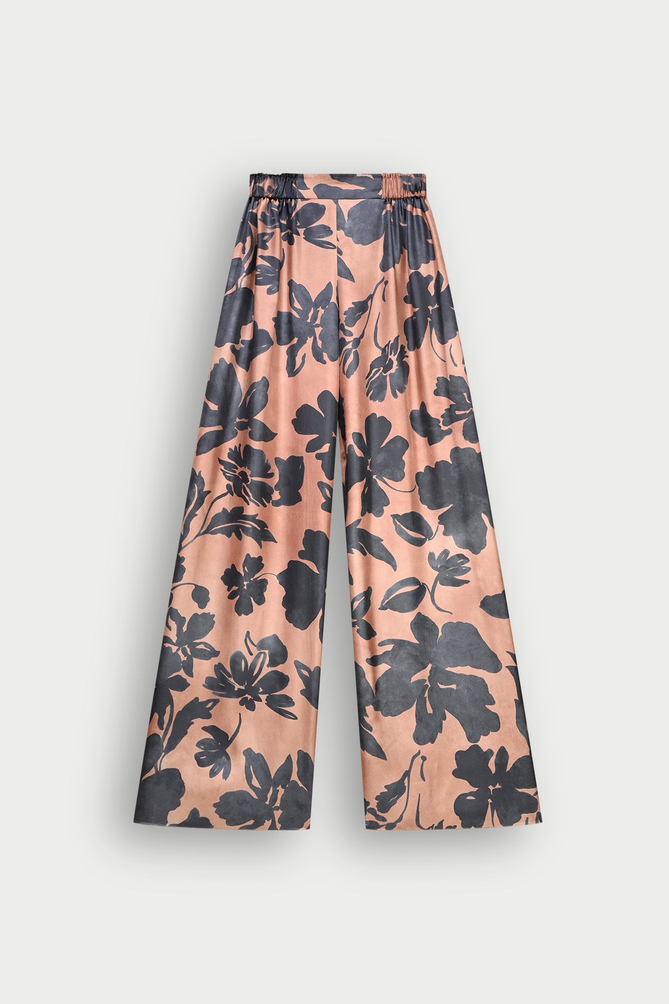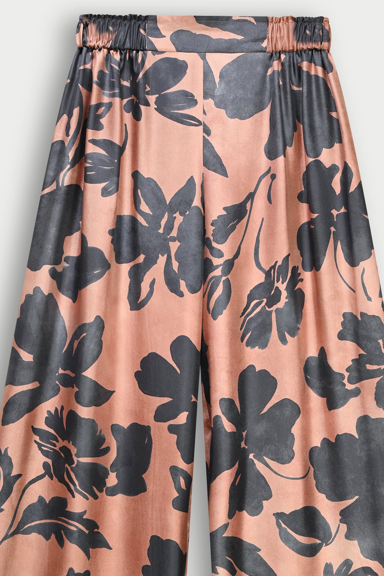 Trousers in double-sided printed floral silk