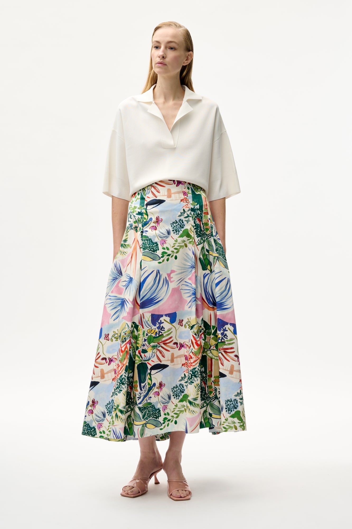 Skirt in cotton with exotic garden print
