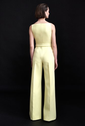 Jumpsuit met rechte pijpen, geribde plooi in pastel-citroen-scuba, eenvoudig recht lijfje