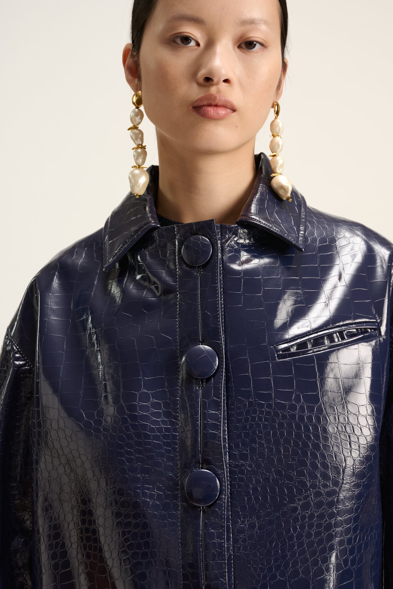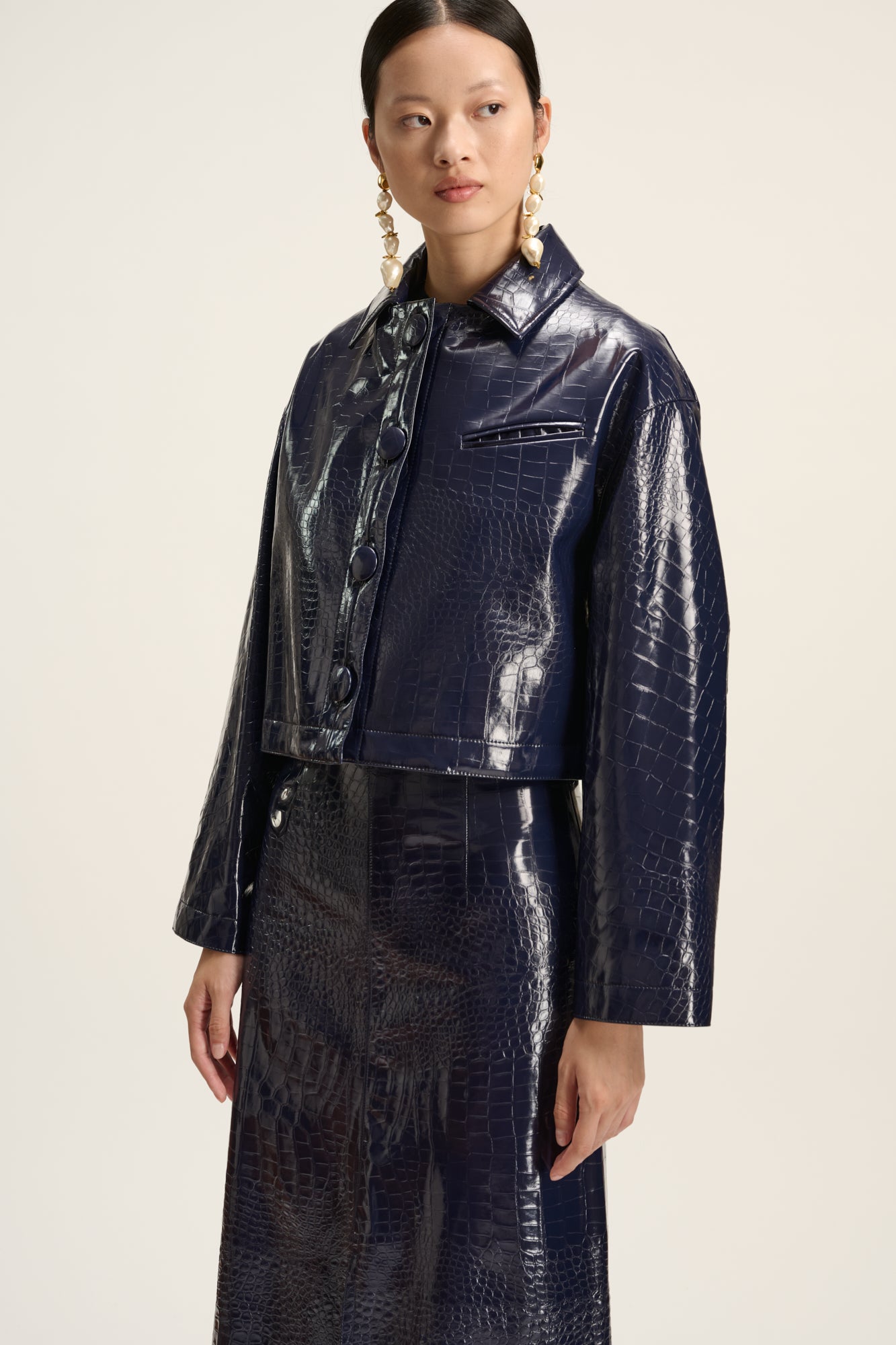 Jas van imitatieleer met krokodilleneffect